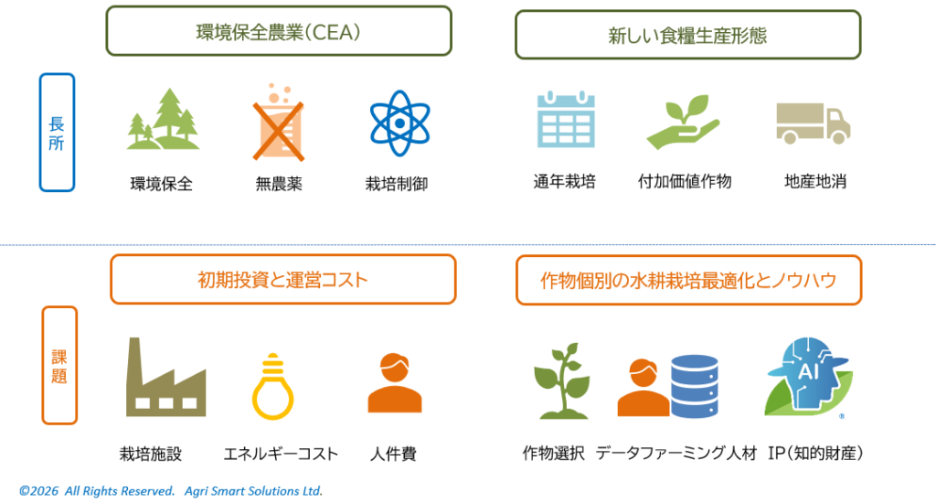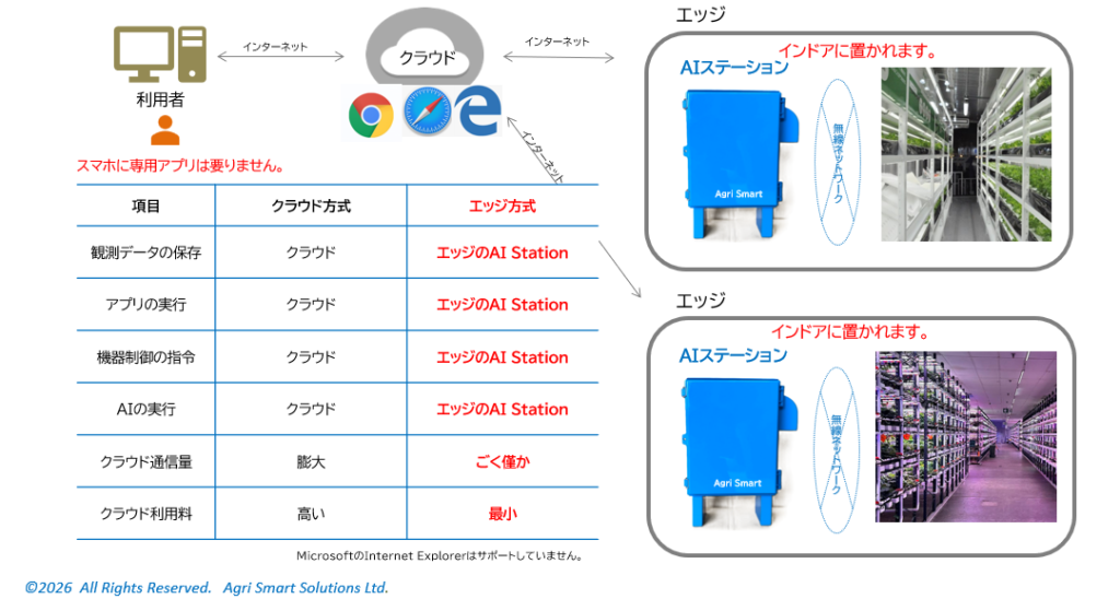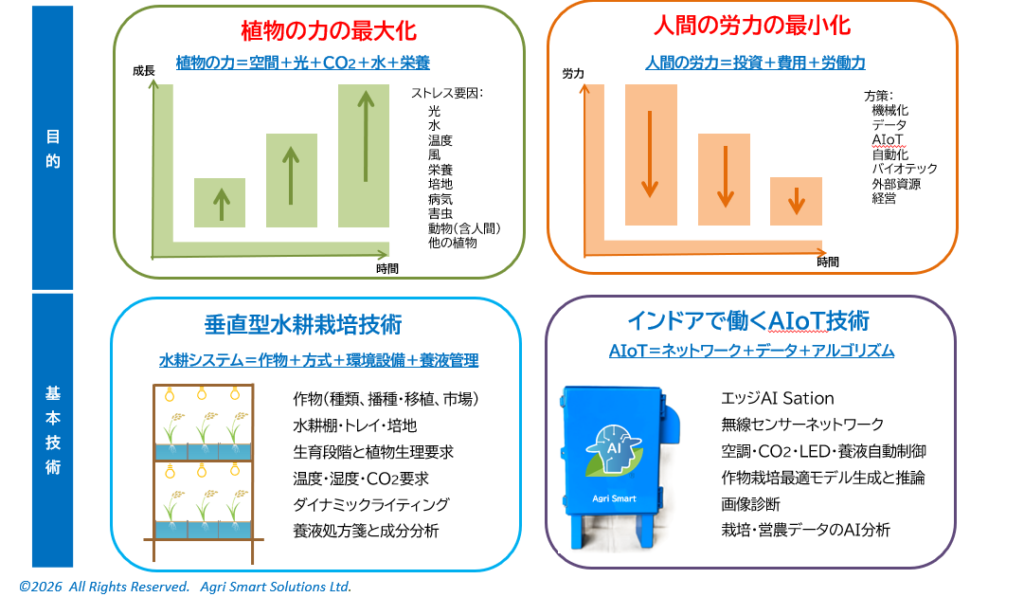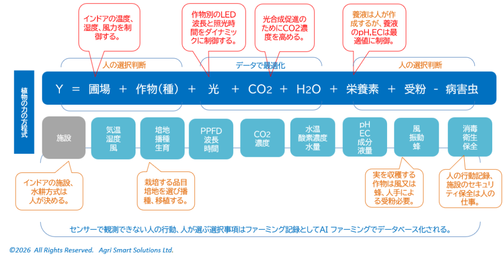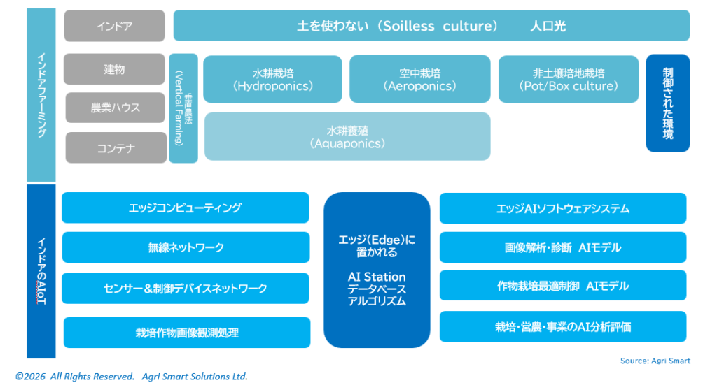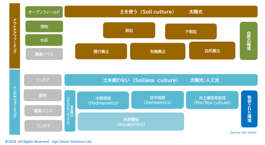 インドアファーミング インドアファーミングは栽培環境を制御しやすいインドア(室内)で、土を使わないで作物を栽培する方法です。 光合成の光エネルギーを太陽光による型と、LEDなどの人工光により照光を制御する型に大別されます。 <次へ> <ホームに戻る>