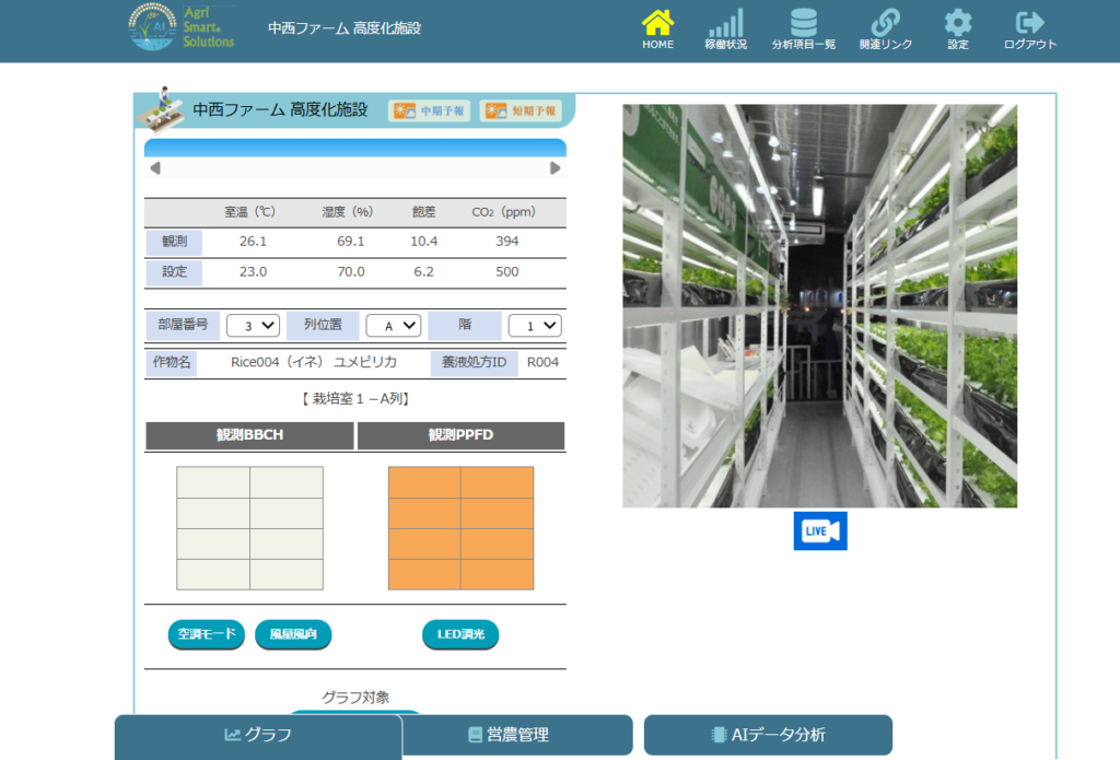 THC(温度・湿度・二酸化炭素濃度)センサー、空調(HVAC)制御機、二酸化炭素ボンベ制御器、養液管理機各1台を接続できます。