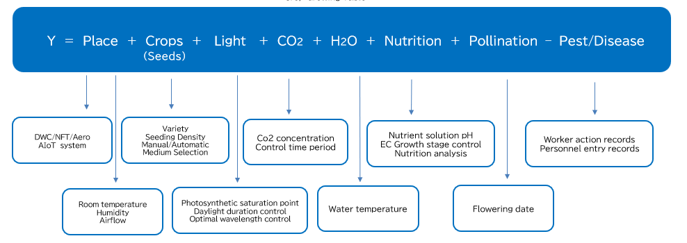 The growth of cultivated crops depends on several factors, such as the cultivation environment (temperature, humidity), light energy that is the basis of photosynthesis, water required for photosynthesis, carbon dioxide, nutrients necessary for growth, etc. AI Farming observes the cultivation environment based on this plant physiology and controls indoor equipment based on that data to provide the best possible growth environment for plants.