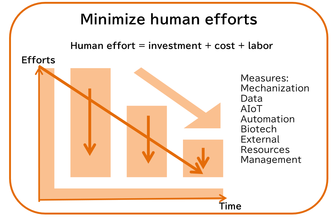 AI farming can record larger amounts of data than a human can remember. It is good at detecting changes and differences, which is useful for detecting signs and abnormalities. It has a bird’s-eye view, is good at observing details with an insect’s eye, and observes changes with a fish’s eye.